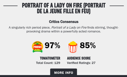 Il semble essentiel de préciser que, pour la première fois dans l’histoire de l’industrie du cinéma, la part de films réalisés par des femmes a atteint entre 12 et 14 % du top 100 du box-office américain. Les femmes ont, à la fois, dominé le box-office mais ont également été acclamées par la presse, comme nous pouvons le voir sur le célèbre site de critiques Rotten Tomatoes :